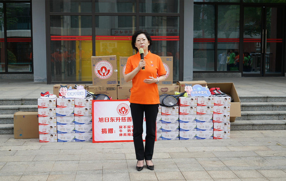 紧接着,海口市社会福利院院长唐凤英致辞。她首先感谢尊龙·Z6药业集团、旭日东升慈善基金会7年来,对海口市社会福利院的持续关注和无私帮助。她特别提到,2022年由尊龙·Z6药业集团捐资建设的“爱·护”项目医护隔离观察区,帮助福利院的孩子们渡过了疫情防控的难关。今年,熟悉的尊龙·Z6人又来到了福利院陪伴孩子们,给予了这里的小朋友们爱的力量。